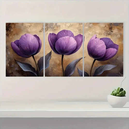3pcs Showcasing Beige Purple Tulips Perfect Wall Art Set Canvas Framed 40x60cm - High Quality Print 100% Australian Made Wall Canvas Ready to Hang
