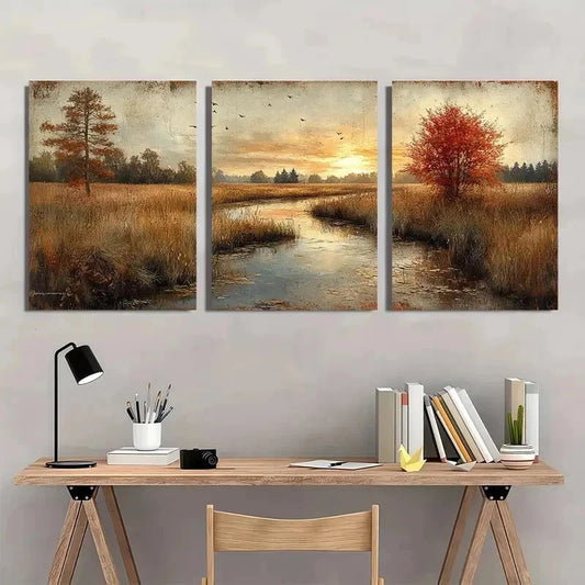 3pcs Impressionist Countryside Golds Nature Wall Art Set Canvas Framed 40x60cm - High Quality Print 100% Australian Made Wall Canvas Ready to Hang