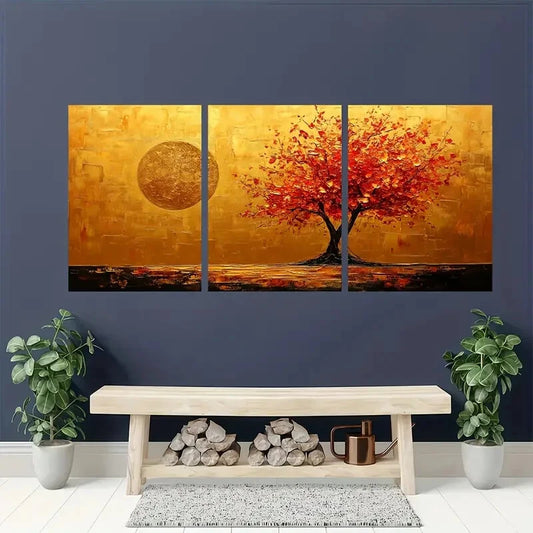 3pcs Abstract Golden Tree Minimalist Metal Print Ready to Hang Art