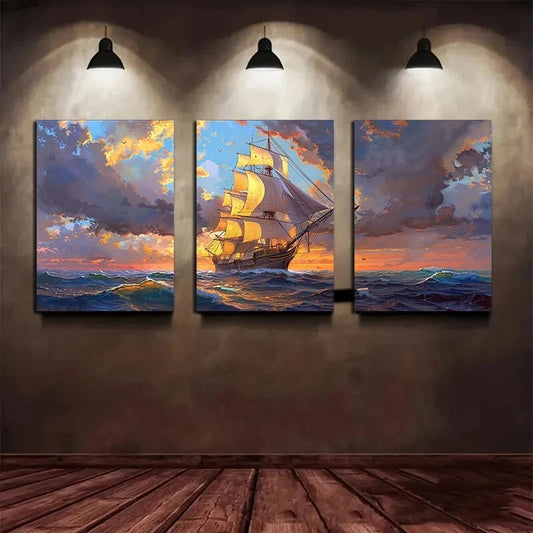 3pcs Ocean Voyage Blue Sky White Clouds Metal Print Ready to Hang Art