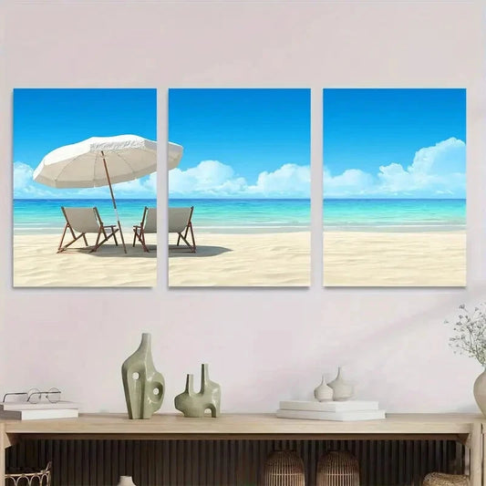 3pcs Beach Scene Ocean Metal Print Ready to Hang Art