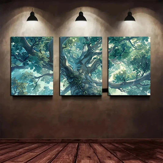 3pcs Abandoned Forest Center Big Tree Metal Print Ready to Hang Art