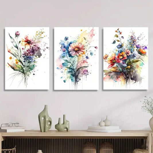 3pcs Abstract beautiful flowers impressionist Metal Print Ready to Hang Art