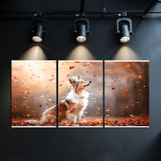 3pcs Shetland Sheepdog in Autumn Leaves Wall Art Set Canvas Framed 50x70cm - High Quality Print 100% Australian Made Wall Canvas Ready to Hang