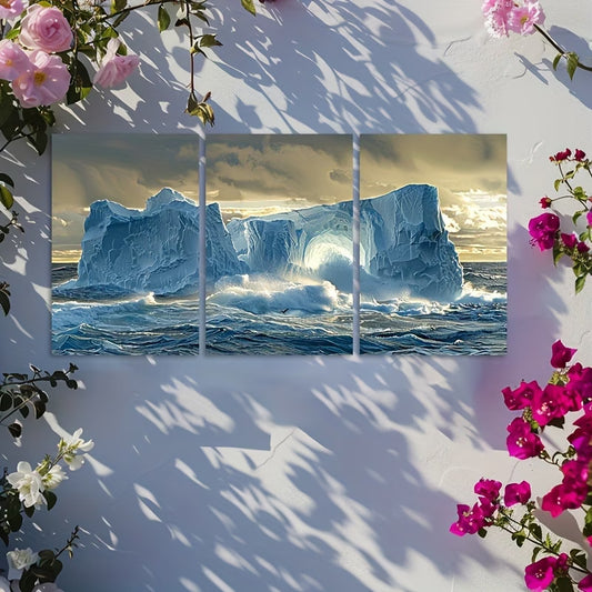 3pcs Iceberg Off The Coast Of Antarctica Wall Art Set Canvas Framed 50x70cm - High Quality Print 100% Australian Made Wall Canvas Ready to Hang