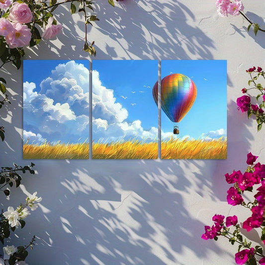 3pcs Hot Air Balloon Floating in The Sky Wall Art Set Canvas Framed 50x70cm - High Quality Print 100% Australian Made Wall Canvas Ready to Hang