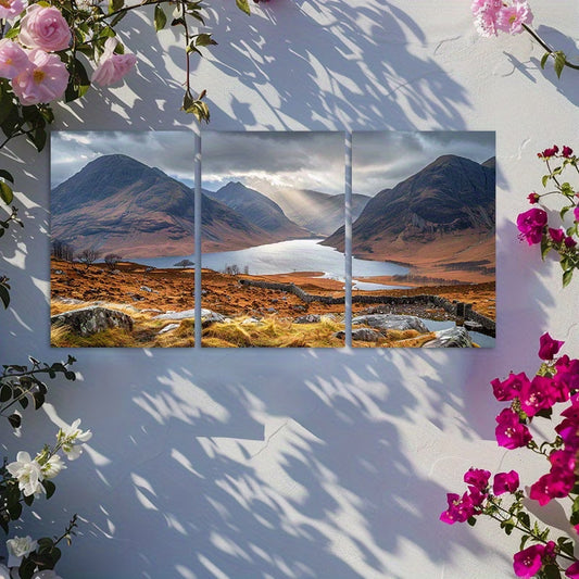 3pcs Mountain Lake Scottish Highlands Landscape Wall Art Set Canvas Framed 50x70cm - High Quality Print 100% Australian Made Wall Canvas Ready to Hang