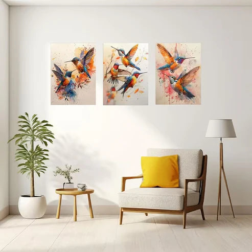 3pcs Vintage Watercolor Hummingbird Wall Art Set Canvas Framed 50x70cm - High Quality Print 100% Australian Made Wall Canvas Ready to Hang