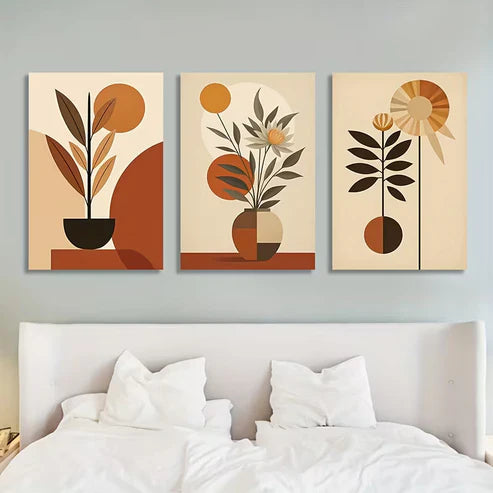 3pcs Abstract Plant Natural Geometric Shapes Wall Art Set Canvas Framed 50x70cm - High Quality Print 100% Australian Made Wall Canvas Ready to Hang