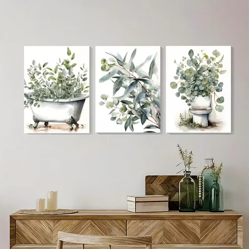 3pcs Plant Bathroom Eucalyptus Art Wall Art Set Canvas Framed 50x70cm - High Quality Print 100% Australian Made Wall Canvas Ready to Hang