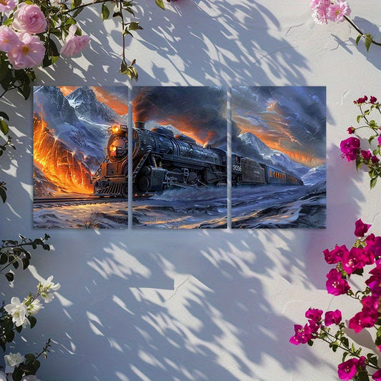 3pcs Vivid Mountain Landscape with Train Wall Art Set Canvas Framed 50x70cm - High Quality Print 100% Australian Made Wall Canvas Ready to Hang