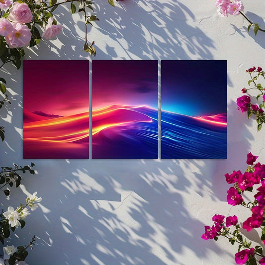 3pcs Vibrant Red, Blue, Orange Abstract Wave Wall Art Set Canvas Framed 50x70cm - High Quality Print 100% Australian Made Wall Canvas Ready to Hang