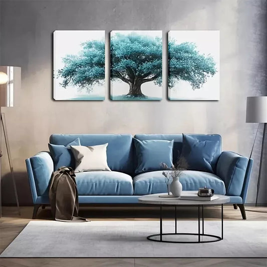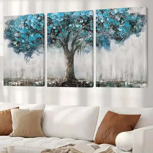 3pcs Blue Tree of Life Modern Abstract Painting Wall Art Set Canvas Framed 50x70cm - High Quality Print 100% Australian Made Wall Canvas Ready to Hang