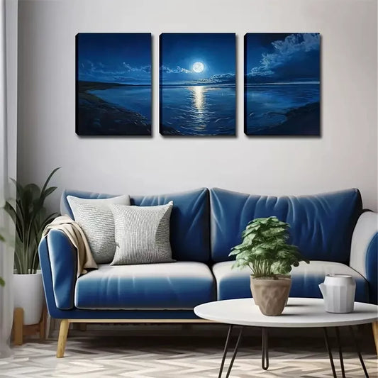 3pcsAbstract Moon Over a Lake Wall Art Set Canvas Framed 50x70cm - High Quality Print 100% Australian Made Wall Canvas Ready to Hang