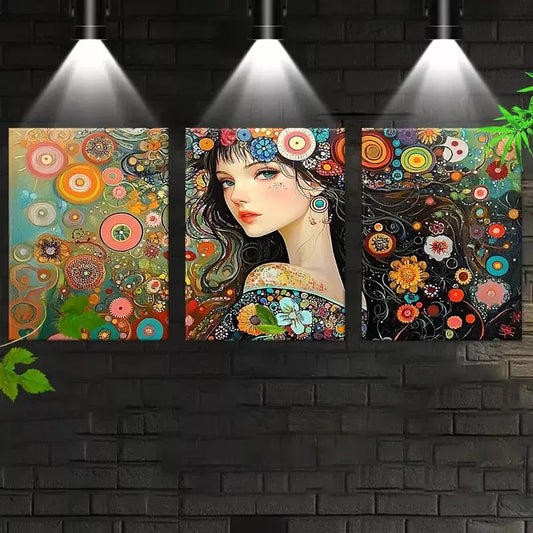 3pcs Charming Fashion Abstract Women with Floral Wall Art Set Canvas Framed 50x70cm - High Quality Print 100% Australian Made Wall Canvas Ready to Hang