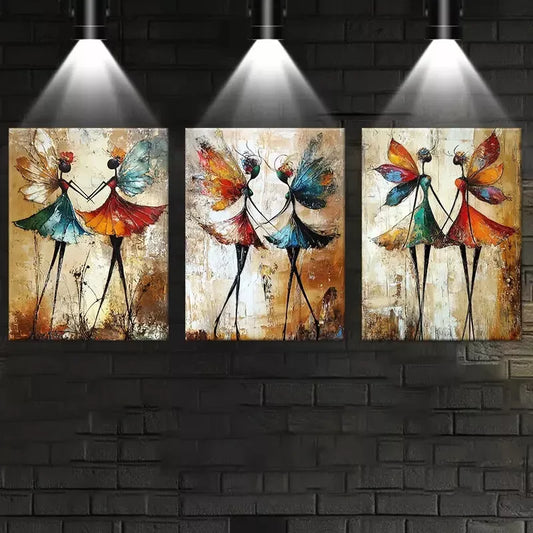 3pcs Charming Vintage Abstract Confident Dancer Wall Art Set Canvas Framed 50x70cm - High Quality Print 100% Australian Made Wall Canvas Ready to Hang