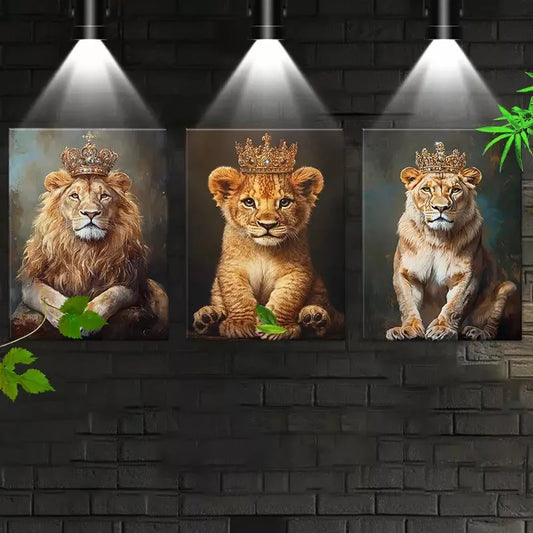 3pcs Modern Abstract Royal Lion Family with Crowns Wall Art Set Canvas Framed 50x70cm - High Quality Print 100% Australian Made Wall Canvas Ready to Hang