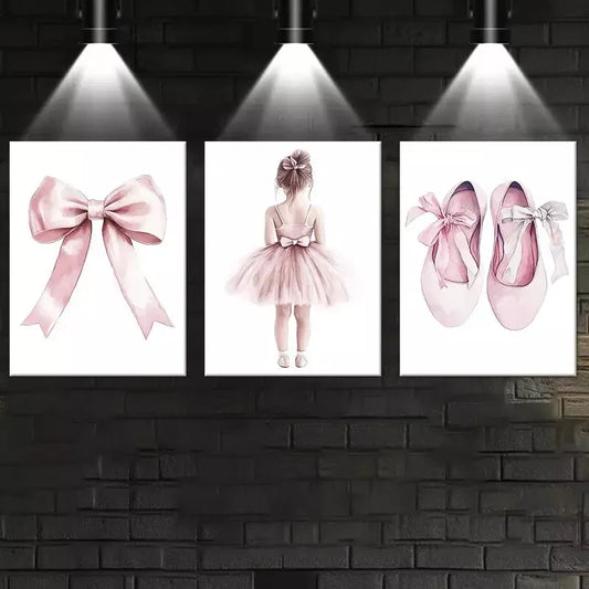 3pcs Elegant Dancer Shoes With Bows Wall Art Set Canvas Framed 50x70cm - High Quality Print 100% Australian Made Wall Canvas Ready to Hang