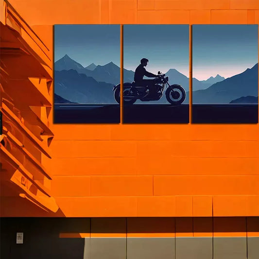 3pcsSilhouette Art Of A Motorcyclist Wall Art Set Canvas Framed 50x70cm - High Quality Print 100% Australian Made Wall Canvas Ready to Hang
