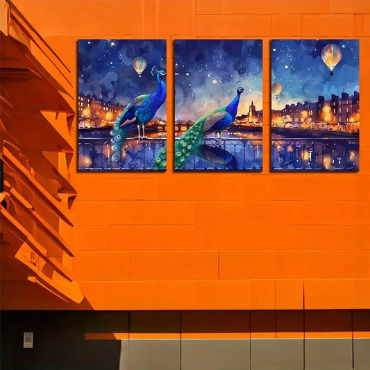 3pcsTwo Peacocks Over Bridge Wall Art Set Canvas Framed 50x70cm - High Quality Print 100% Australian Made Wall Canvas Ready to Hang