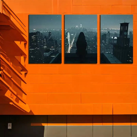 3pcs Woman Sitting At The Edge Of A Building Wall Art Set Canvas Framed 50x70cm - High Quality Print 100% Australian Made Wall Canvas Ready to Hang