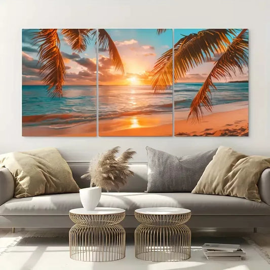 3pcsBeach Sunrise Wall Art Set Canvas Framed 50x70cm - High Quality Print 100% Australian Made Wall Canvas Ready to Hang