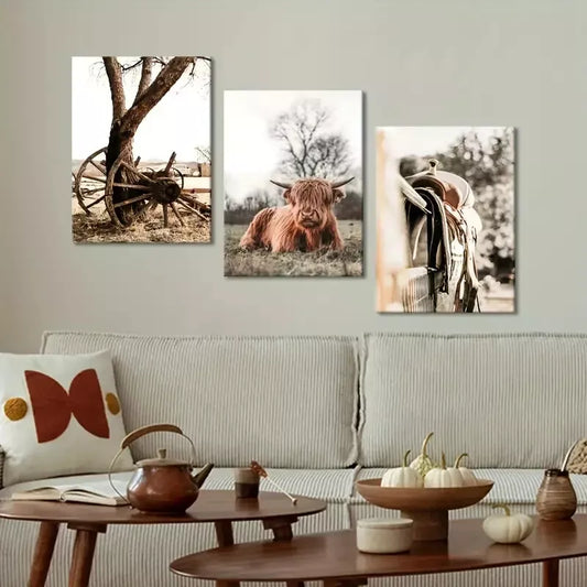 3pcsRural Bohemian Neutral Southwest Style Wall Art Set Canvas Framed 50x70cm - High Quality Print 100% Australian Made Wall Canvas Ready to Hang