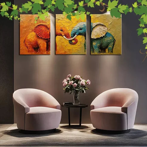 3pcs Elephant Duo Canvas Framed 60x90cm - High Quality Print 100% Australian Made Wall Canvas Ready to Han