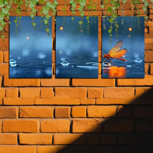3pcs Dragonfly Over A Puddle Of Water Canvas Framed 60x90cm - High Quality Print 100% Australian Made Wall Canvas Ready to Hang