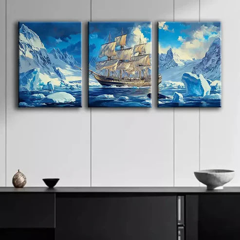 3pcs Glacier Sailboat Canvas Framed 60x90cm - High Quality Print 100% Australian Made Wall Canvas Ready to Hang