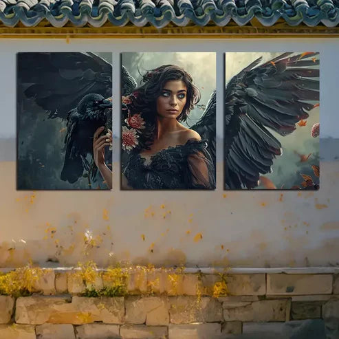 3pcs Crow On An Angles' Shoulder Canvas Framed 60x90cm - High Quality Print 100% Australian Made Wall Canvas Ready to Hang