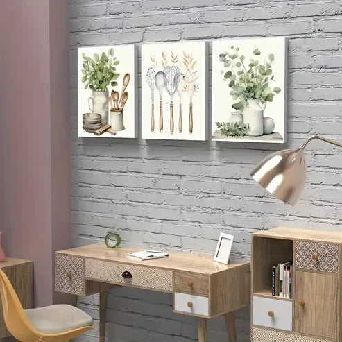 3pcs Kitchen Green Spice Oil Painting Canvas Framed 60X90cm - High Quality Print 100% Australian Made Wall Canvas Ready to Hang