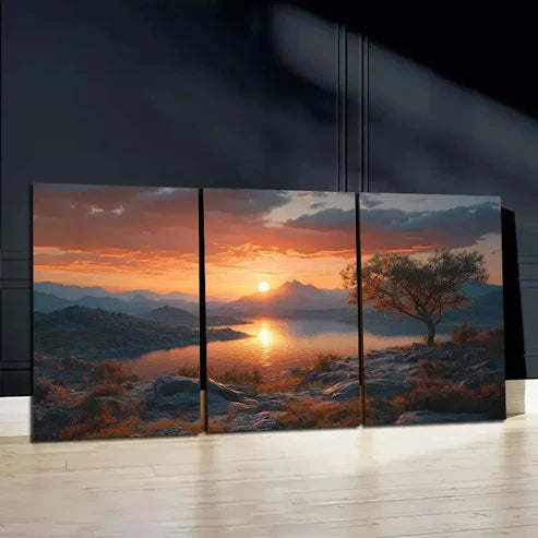 3pcs Sunset Lake Canvas Framed 60X90cm - High Quality Print 100% Australian Made Wall Canvas Ready to Hang
