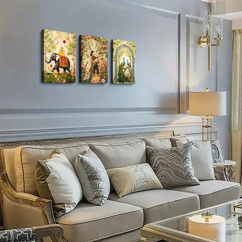 3pcs Woman in Garden, Peacock & Elephant Canvas Framed 60x90cm - High Quality Print 100% Australian Made Wall Canvas Ready to Hang
