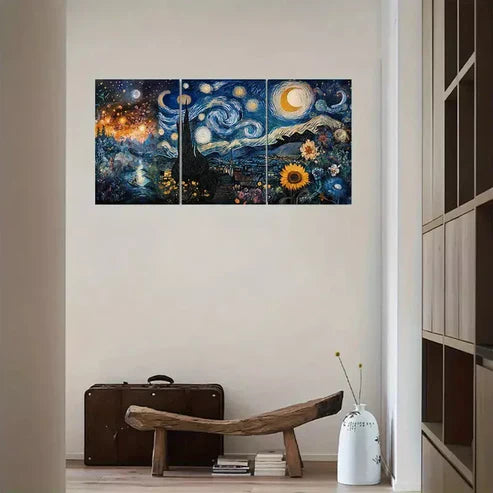 3pcs Starry Night & Ocean Surface Canvas Framed 60x90cm - High Quality Print 100% Australian Made Wall Canvas Ready to Hang