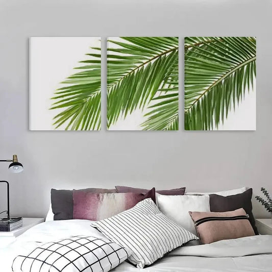 3pcs Palm leaves Isolated on a white Background Wall Art Set Canvas Framed 60x90cm - High Quality Print 100% Australian Made Wall Canvas Ready to Hang