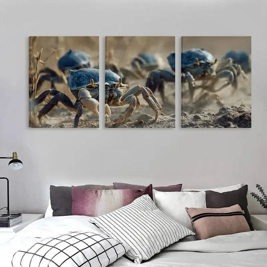 3pcs Group of Crabs Carrying Blue Shells Wall Art Set Canvas Framed 60x90cm - High Quality Print 100% Australian Made Wall Canvas Ready to Hang