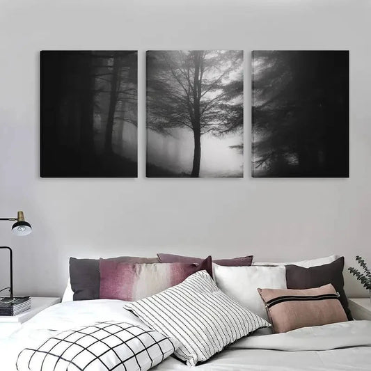 3pcs Black & White Forest Foggy Tree Landscape Wall Art Set Canvas Framed 60x90cm - High Quality Print 100% Australian Made Wall Canvas Ready to Hang