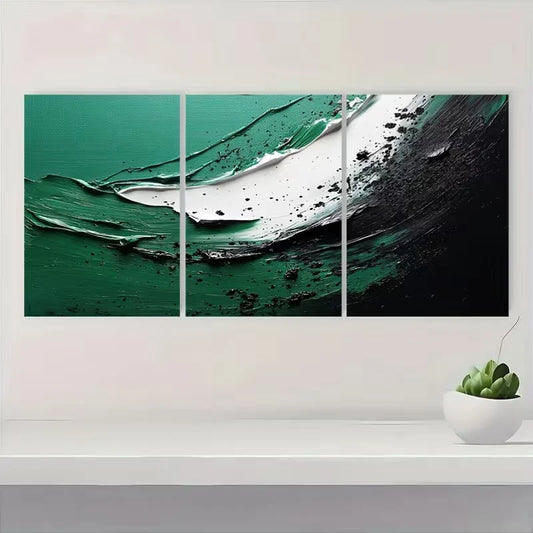 3pcs Green & White Abstract Painting Wall Art Set Canvas Framed 60x90cm - High Quality Print 100% Australian Made Wall Canvas Ready to Hang