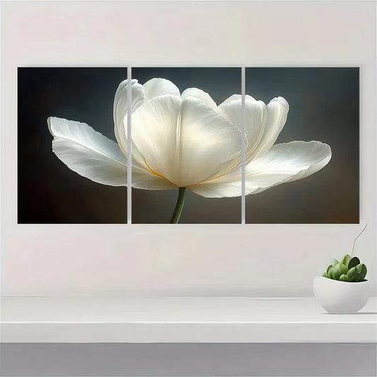 3pcs Beautiful White Tulip Art Painting Wall Art Set Canvas Framed 60x90cm - High Quality Print 100% Australian Made Wall Canvas Ready to Hang