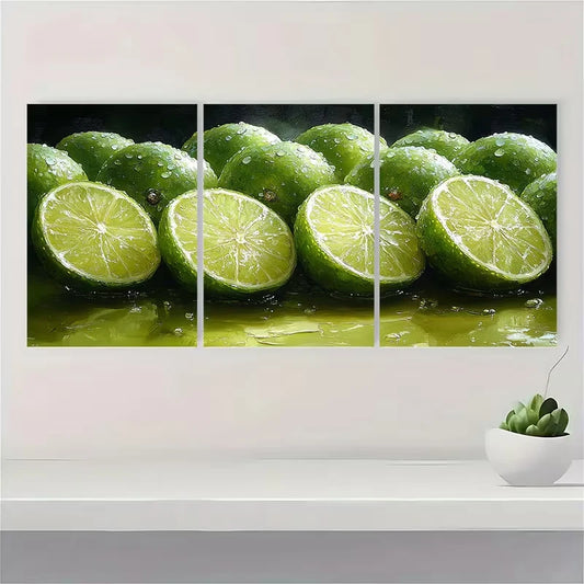 3pcs Green Lime Slices Oil Painting Artwork Wall Art Set Canvas Framed 60x90cm - High Quality Print 100% Australian Made Wall Canvas Ready to Hang