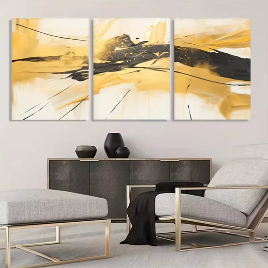 3pcs Abstract Black and Golden Color Wall Art Set Canvas Framed 60x90cm - High Quality Print 100% Australian Made Wall Canvas Ready to Hang