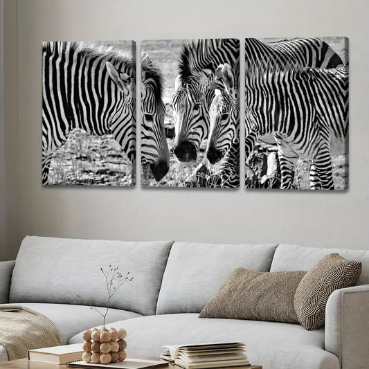 3pcs Black & White Zebra Horse Print Wall Art Set Canvas Framed 60x90cm - High Quality Print 100% Australian Made Wall Canvas Ready to Hang
