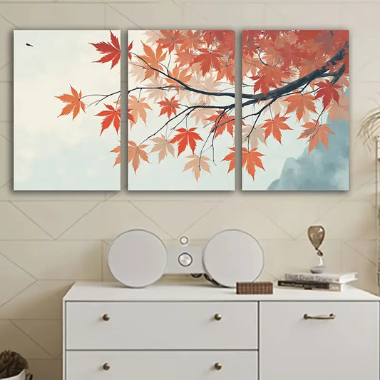 3pcs Red Leaf Nature Modern Poster Wall Art Set Canvas Framed 60x90cm - High Quality Print 100% Australian Made Wall Canvas Ready to Hang