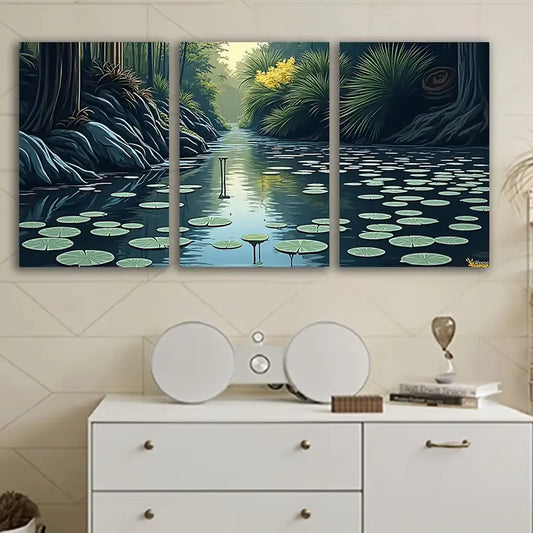 3pcs Pond Landscape Nature Painting Wall Art Set Canvas Framed 60x90cm - High Quality Print 100% Australian Made Wall Canvas Ready to Hang