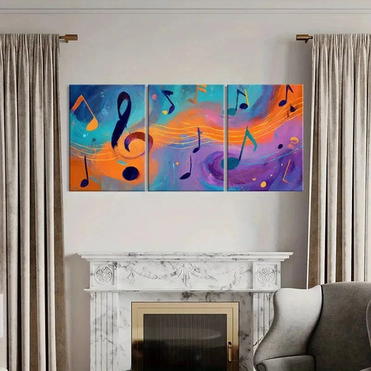 3pcs Abstract Music Notes Art, Colorful Swirls Wall Art Set Canvas Framed 60x90cm - High Quality Print 100% Australian Made Wall Canvas Ready to Hang