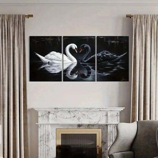 3pcs Elegant Swan Water Reflection Art Wall Art Set Canvas Framed 60x90cm - High Quality Print 100% Australian Made Wall Canvas Ready to Hang