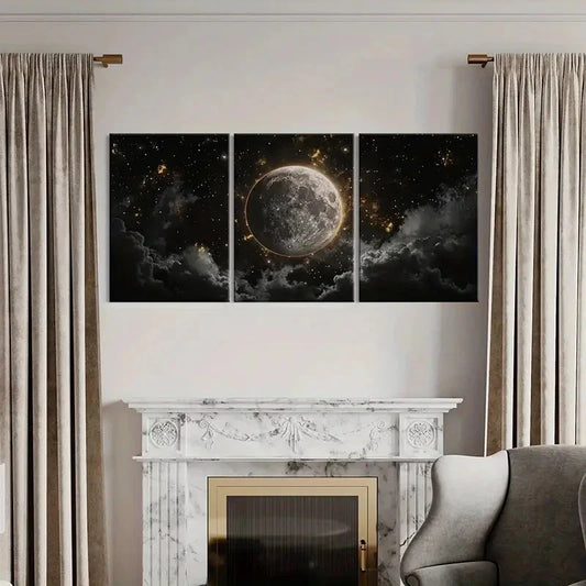 3pcs Moonlit Sky, Cosmic Clouds, Celestial Art Wall Art Set Canvas Framed 60x90cm - High Quality Print 100% Australian Made Wall Canvas Ready to Hang