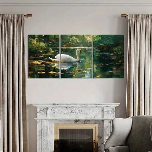 3pcs Swan Lake Scenery Forest Reflections Wall Art Set Canvas Framed 60x90cm - High Quality Print 100% Australian Made Wall Canvas Ready to Hang