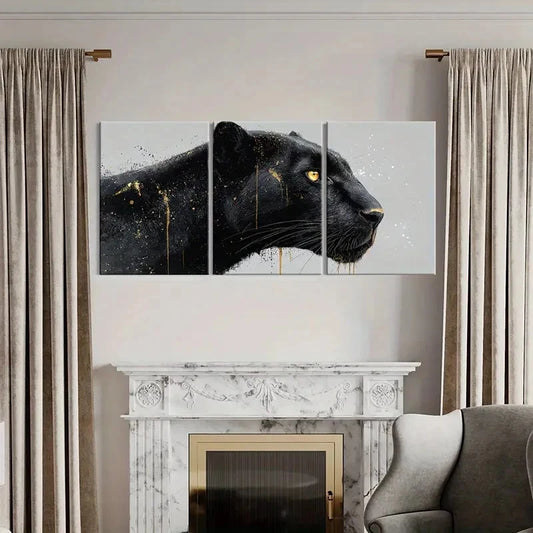 3pcs Black & White Abstract Black Panther Wall Art Set Canvas Framed 60x90cm - High Quality Print 100% Australian Made Wall Canvas Ready to Hang